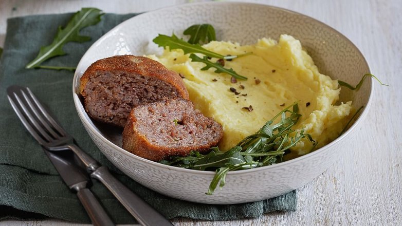 - Brambory rozšťouchejte mačkadlem na brambory. Vmíchejte ztuhlé máslo a vyšlehejte s teplým mlékem do hladka. Případně dosolte do chuti.
