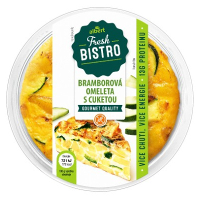 Volba pro milovníky domácích pokrmů: Bramborová omeleta se zeleninou nebo varianta s cuketou Fresh Bistro spojují vejce, brambory a zeleninu do jednoduchého, ale chuťově výrazného jídla, které může zpestřit pracovní oběd. á 64,90 Kč