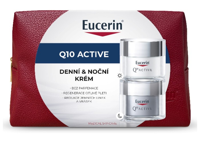 Denní a noční krém pro citlivou pleť s koenzymem Q10 který redukují jemné vrásky. V praktickém neceseru. Eucerin, speciální vánoční cena 1350 Kč, v lékárnách.