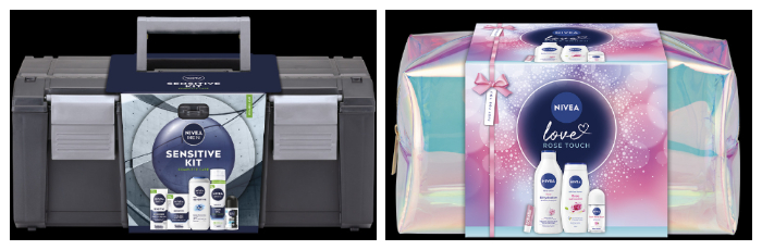 1. Nivea Men, velký box kosmetiky pro silné muže s citlivou pletí je jednou z řady skvělých možností oblíbené značky. Nivea, 1000 Kč / 2. Dárková taška plná něžné růžové péče o pokožku: Sprchový gel, tělové mléko, kuličkový antiperspirant a Labello balzám na rty. Nivea, 670 Kč