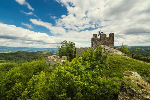 Zříceninu hradu z přelomu 14. a 15. století najdete nad stejnojmenným městečkem. Její pravidelná trojúhelníková dispozice je velmi rozlehlá a výhodou je, že nabízí výhledy do všech stran, zejména na nedaleké Doupovské hory. V roce 1786 se tu prý procházel i Johann Wolfgang Goethe.