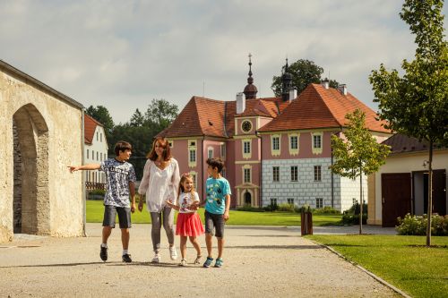 Původně šlo o středověkou tvrz, z níž se ale v 16. století stal renesanční zámek. V první polovině 19. století se pak renesanční styl proměnil na pozdně klasicistní. Sloužil jako letní rezidence, a tak vás prohlídkové trasy provedou knížecím apartmánem, společenskými salony i dětskými pokoji. Určitě se projděte zahradou a navštivte také místní oranžerii.