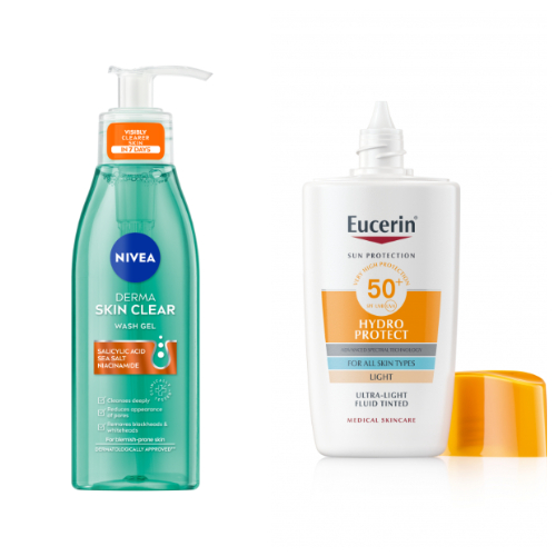 1. Pravidelné čištění je základem zdravé pleti. I když nenosíte make-up, na obličej se vám každý den nachytá spousta nečistot či bakterií. Čisticí gel vyčistí i hluboké póry, redukuje černé tečky a zamezí tvorbě pupínků s pomocí kyseliny salicylové, mořské soli a niacinamidu. Nivea, 150 ml/210 Kč / 2. Ultralehký opalovací fluid SPF 50+ pro ochranu, hydrataci a pocit svěžesti. Chrání pokožku před poškozením sluncem. Pdporuje vlastní mechanismy pokožky pro opravu DNA. Je neocenitelný například na horách při jarním lyžování. Eucerin, 650 Kč