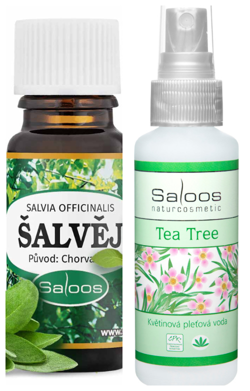 1. Esenciální olej Šalvěj je skvělým doplňkem do koupelí, zejména pro péči o unavené nohy. Osvěží a revitalizuje pokožku, uklidňující aroma pak podpoří celkovou pohodu. Saloos, 10 ml/113 Kč, www.saloos.cz / 2. Antimikrobiální květinová pleťová voda Tea tree obsahuje výtažky tea tree v nižší koncentraci než olejíček. Prvotně je určena k péči o aknózní pleť, ale dobře se uplatní v prevenci proti zápachu. Saloos, 50 ml/129 Kč, www.saloos.cz
