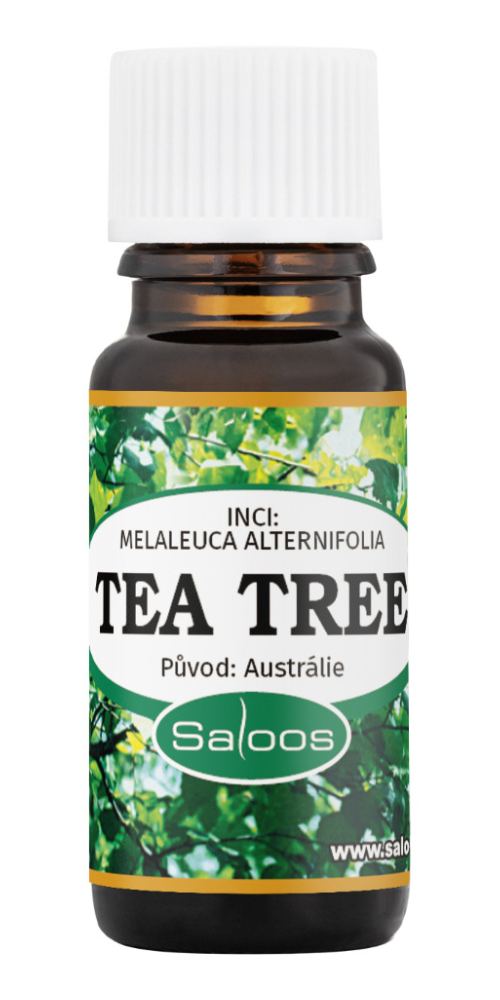 Tea tree použitý v aromaterapii čistí vzduch, posiluje imunitu, uklidňuje. Koncentrovanou sílu antibakteriálních složek lze účinně využít při likvidaci akutních mykóz mezi prsty či pro hojení podebraného palce. Saloos, 10 ml/113 Kč, www.saloos.cz